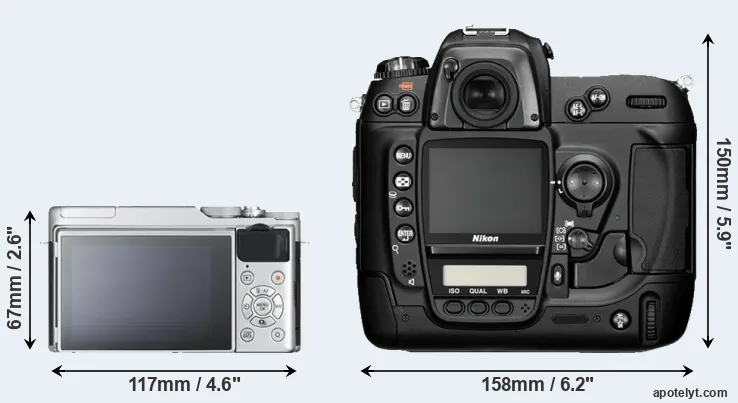 | 13. | Nikon D1H | 157 mm | 153 mm | 85 mm | 1100 g | 1200 | Y | Feb 2001 | US$ 4 499 | ebay.com | |