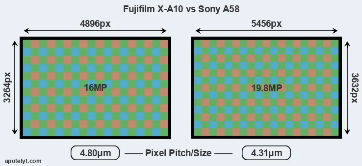 | Sensor Specs | Fujifilm X-A10 | Sony A58 |