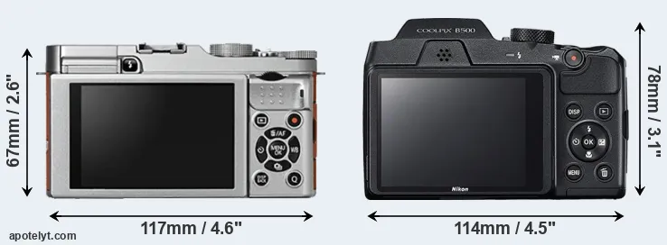 | Body Specs | Fujifilm X-A2 | Nikon B500 |