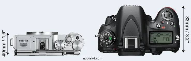 The physical size and weight of the Fujifilm X-A2 and the Nikon D610 are illustrated in the side-by-side display below. The two cameras are presented according to their relative size. Three consecutive perspectives from the front, the top, and the back are available. All width, height and depth measures are rounded to the nearest millimeter.