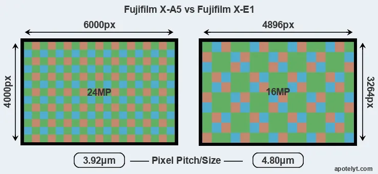| Sensor Specs | Fujifilm X-A5 | Fujifilm X-E1 |