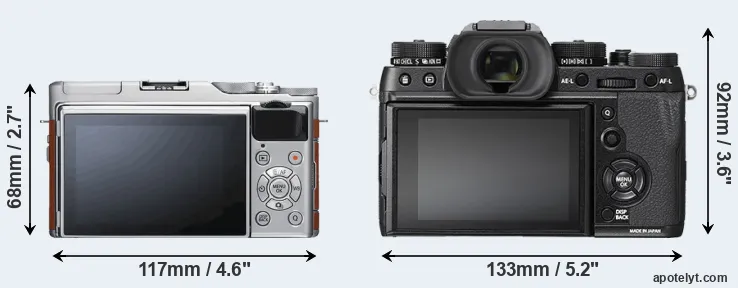 The above size and weight comparisons are to some extent incomplete since they do not consider the interchangeable lenses that both of these cameras require. In this particular case, both cameras feature the same lens mount, so that they can use the same lenses. You can compare the optics available in the Fujinon X Lens Catalog. Mirrorless cameras, such as the two under consideration, have the additional advantage of having a short flange to focal plane distance, which makes it possible to mount many lenses from other systems onto the camera via adapters.
