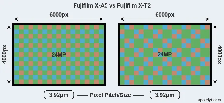 | Sensor Specs | Fujifilm X-A5 | Fujifilm X-T2 |