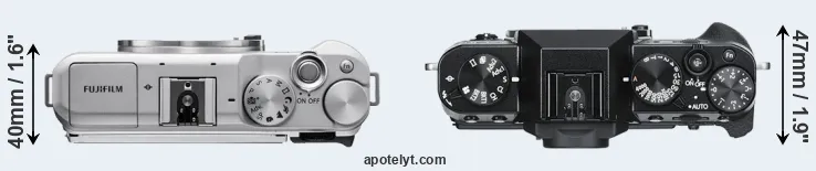 The above size and weight comparisons are to some extent incomplete since they do not consider the interchangeable lenses that both of these cameras require. In this particular case, both cameras feature the same lens mount, so that they can use the same lenses. You can compare the optics available in the Fujinon X Lens Catalog. Mirrorless cameras, such as the two under consideration, have the additional advantage of having a short flange to focal plane distance, which makes it possible to mount many lenses from other systems onto the camera via adapters.