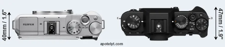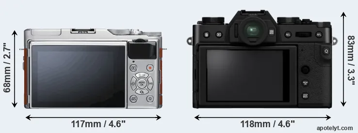 The above size and weight comparisons are to some extent incomplete since they do not consider the interchangeable lenses that both of these cameras require. In this particular case, both cameras feature the same lens mount, so that they can use the same lenses. You can compare the optics available in the Fujinon X Lens Catalog. Mirrorless cameras, such as the two under consideration, have the additional advantage of having a short flange to focal plane distance, which makes it possible to mount many lenses from other systems onto the camera via adapters.