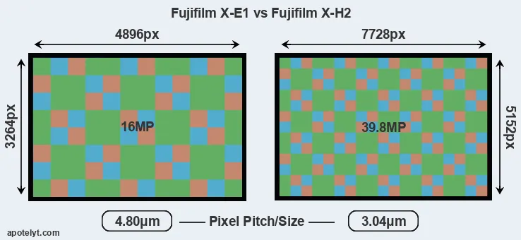 | Sensor Specs | Fujifilm X-E1 | Fujifilm X-H2 |