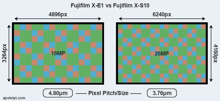 | Sensor Specs | Fujifilm X-E1 | Fujifilm X-S10 |