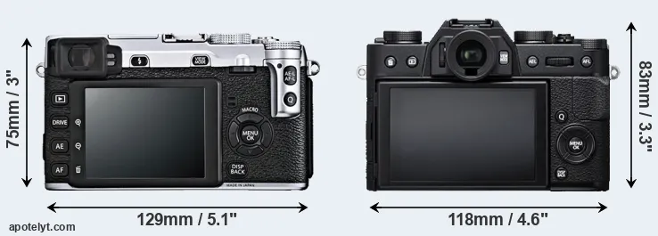 The above size and weight comparisons are to some extent incomplete since they do not consider the interchangeable lenses that both of these cameras require. In this particular case, both cameras feature the same lens mount, so that they can use the same lenses. You can compare the optics available in the Fujinon X Lens Catalog. Mirrorless cameras, such as the two under consideration, have the additional advantage of having a short flange to focal plane distance, which makes it possible to mount many lenses from other systems onto the camera via adapters.