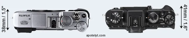 The side-by-side display below illustrates the physical size and weight of the Fujifilm X-E1 and the Fujifilm X-T20. The two cameras are presented according to their relative size. Three consecutive perspectives from the front, the top, and the back are available. All width, height and depth measures are rounded to the nearest millimeter.