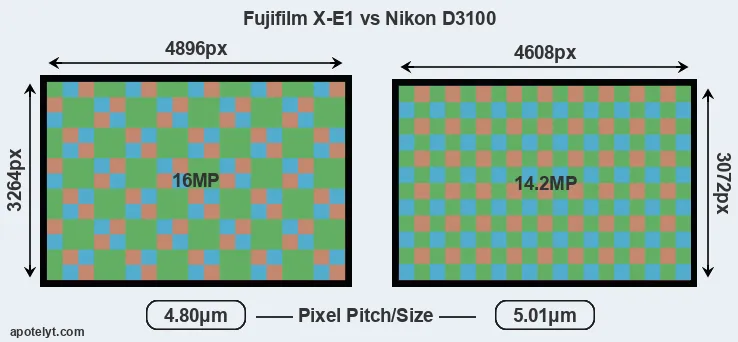 | Sensor Specs | Fujifilm X-E1 | Nikon D3100 |