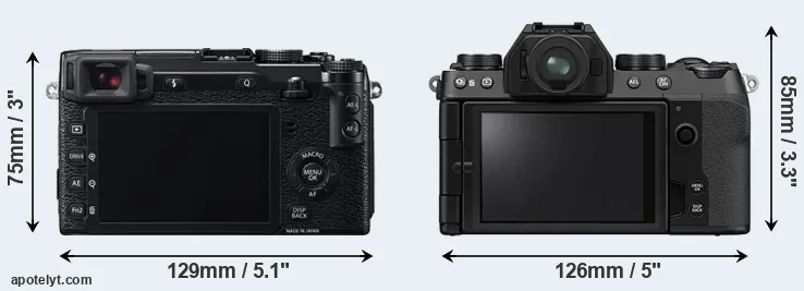 The above size and weight comparisons are to some extent incomplete since they do not consider the interchangeable lenses that both of these cameras require. In this particular case, both cameras feature the same lens mount, so that they can use the same lenses. You can compare the optics available in the Fujinon X Lens Catalog. Mirrorless cameras, such as the two under consideration, have the additional advantage of having a short flange to focal plane distance, which makes it possible to mount many lenses from other systems onto the camera via adapters.