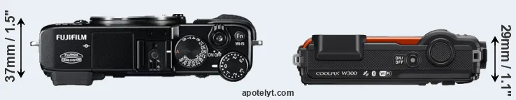 Size Fujifilm X-E2 vs Nikon W300