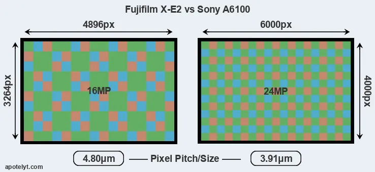 | Sensor Specs | Fujifilm X-E2 | Sony A6100 |