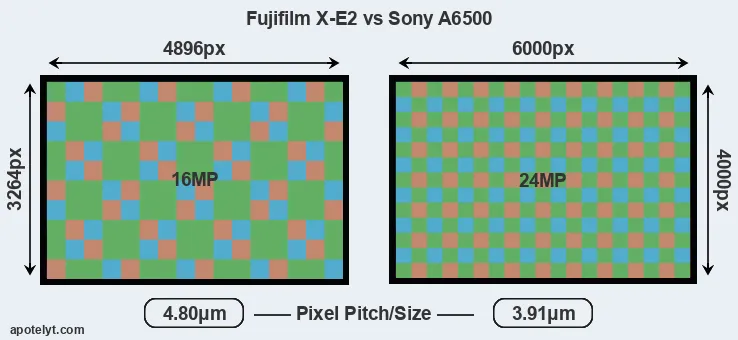 | Sensor Specs | Fujifilm X-E2 | Sony A6500 |