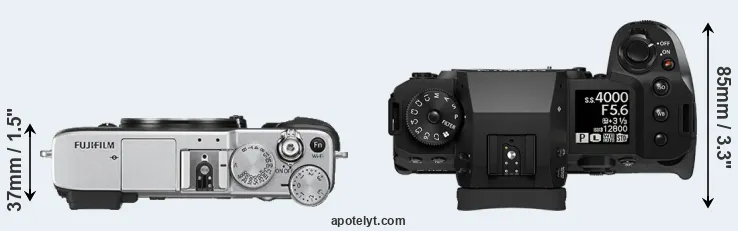 The above size and weight comparisons are to some extent incomplete since they do not consider the interchangeable lenses that both of these cameras require. In this particular case, both cameras feature the same lens mount, so that they can use the same lenses. You can compare the optics available in the Fujinon X Lens Catalog. Mirrorless cameras, such as the two under consideration, have the additional advantage of having a short flange to focal plane distance, which makes it possible to mount many lenses from other systems onto the camera via adapters.