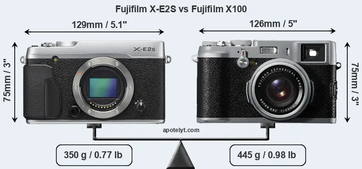 Size Fujifilm X-E2S vs Fujifilm X100
