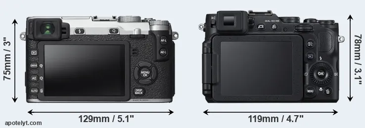 The side-by-side display below illustrates the physical size and weight of the Fujifilm X-E2S and the Nikon P7800. The two cameras are presented according to their relative size. Three consecutive perspectives from the front, the top, and the back are available. All width, height and depth measures are rounded to the nearest millimeter.