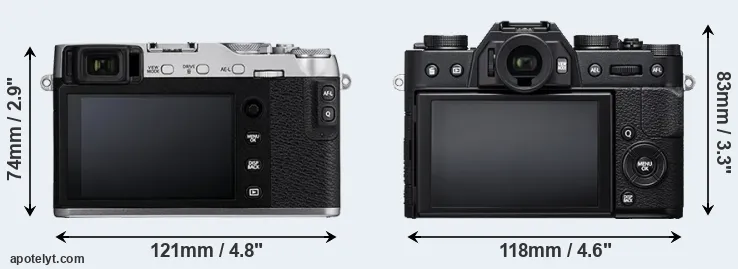 The above size and weight comparisons are to some extent incomplete since they do not consider the interchangeable lenses that both of these cameras require. In this particular case, both cameras feature the same lens mount, so that they can use the same lenses. You can compare the optics available in the Fujinon X Lens Catalog. Mirrorless cameras, such as the two under consideration, have the additional advantage of having a short flange to focal plane distance, which makes it possible to mount many lenses from other systems onto the camera via adapters.
