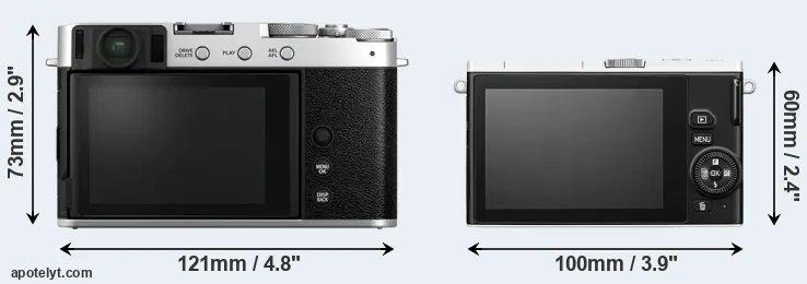 | 1. | Fujifilm X-E4 | 121 mm | 73 mm | 33 mm | 364 g | 380 | n | Jan 2021 | US$ 849 | ebay.com | |