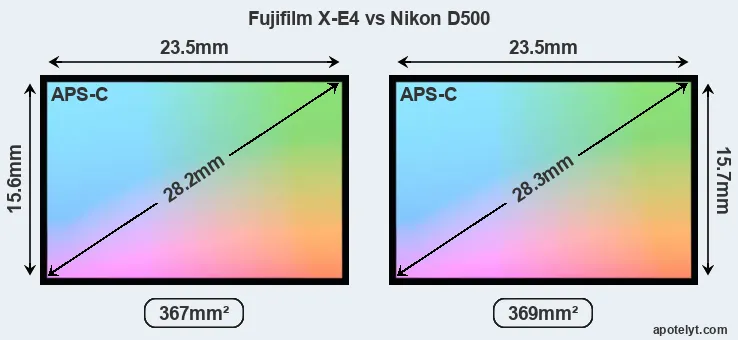 | Sensor Specs | Fujifilm X-E4 | Nikon D500 |
