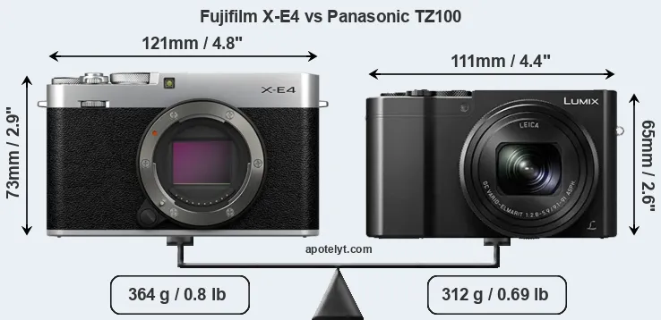 | Body Specs | Fujifilm X-E4 | Panasonic TZ100 |