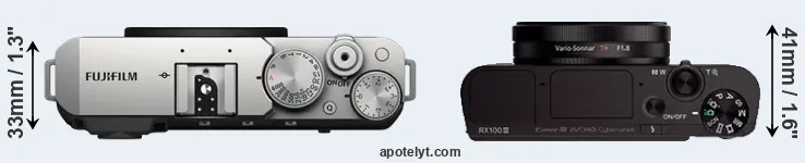 Size Fujifilm X-E4 vs Sony RX100 III