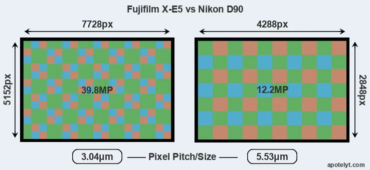 | Sensor Specs | Fujifilm X-E5 | Nikon D90 |