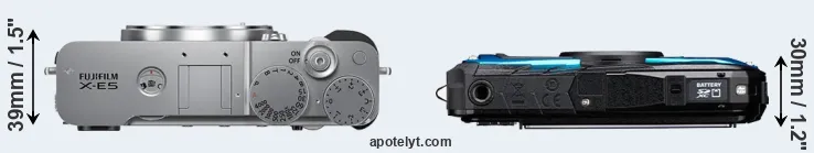 The above size and weight comparisons are to some extent incomplete and possibly misleading, as the WG-90 has a lens built in, whereas the X-E5 is an interchangeable lens camera that requires a separate lens. Attaching the latter will add extra weight and bulk to the setup. You can compare the optics available for the X-E5 and their specifications in the Fujinon X Lens Catalog.
