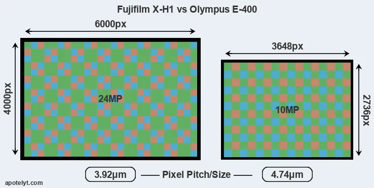 | Sensor Specs | Fujifilm X-H1 | Olympus E-400 |