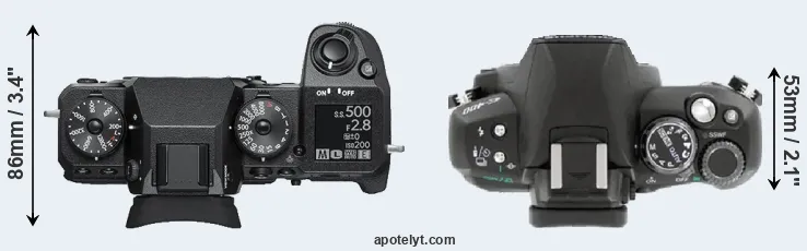 | 1. | Fujifilm X-H1 | 140 mm | 97 mm | 86 mm | 673 g | 310 | Y | Feb 2018 | US$ 1 899 | ebay.com | |