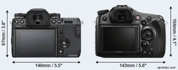Going beyond this snapshot of core features and characteristics, what are the differences between the Fujifilm X-H1 and the Sony Alpha SLT-A68? Which one should you buy? Read on to find out how these two cameras compare with respect to their body size, their imaging sensors, their shooting features, their input-output connections, and their reception by expert reviewers.