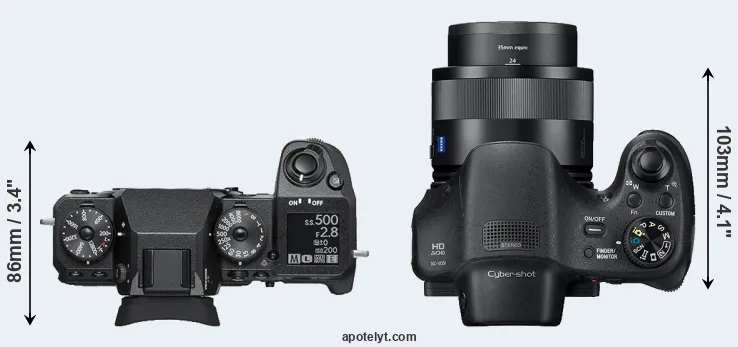Going beyond this snapshot of core features and characteristics, what are the differences between the Fujifilm X-H1 and the Sony Cyber-shot DSC-HX350? Which one should you buy? Read on to find out how these two cameras compare with respect to their body size, their imaging sensors, their shooting features, their input-output connections, and their reception by expert reviewers.