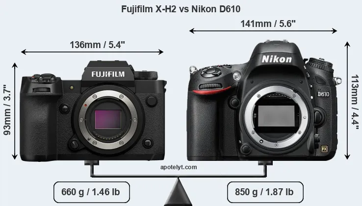 | Body Specs | Fujifilm X-H2 | Nikon D610 |