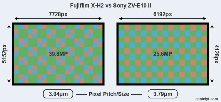 | Sensor Specs | Fujifilm X-H2 | Sony ZV-E10 II |