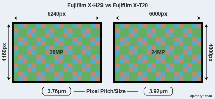 | Sensor Specs | Fujifilm X-H2S | Fujifilm X-T20 |