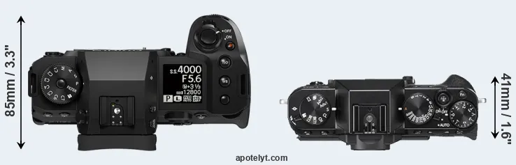The side-by-side display below illustrates the physical size and weight of the Fujifilm X-H2S and the Fujifilm X-T20. The two cameras are presented according to their relative size. Three consecutive perspectives from the front, the top, and the back are available. All width, height and depth dimensions are rounded to the nearest millimeter.