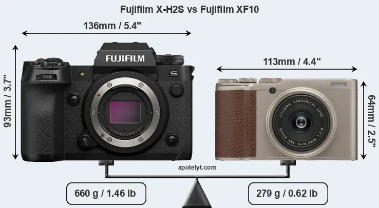 Size Fujifilm X-H2S vs Fujifilm XF10