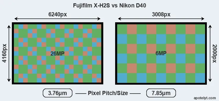 | Sensor Specs | Fujifilm X-H2S | Nikon D40 |