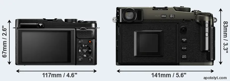 The above size and weight comparisons are to some extent incomplete since they do not consider the interchangeable lenses that both of these cameras require. In this particular case, both cameras feature the same lens mount, so that they can use the same lenses. You can compare the optics available in the Fujinon X Lens Catalog. Mirrorless cameras, such as the two under consideration, have the additional advantage of having a short flange to focal plane distance, which makes it possible to mount many lenses from other systems onto the camera via adapters.