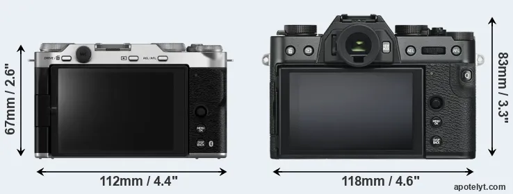 The above size and weight comparisons are to some extent incomplete since they do not consider the interchangeable lenses that both of these cameras require. In this particular case, both cameras feature the same lens mount, so that they can use the same lenses. You can compare the optics available in the Fujinon X Lens Catalog. Mirrorless cameras, such as the two under consideration, have the additional advantage of having a short flange to focal plane distance, which makes it possible to mount many lenses from other systems onto the camera via adapters.
