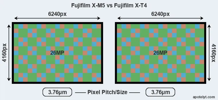 | Sensor Specs | Fujifilm X-M5 | Fujifilm X-T4 |
