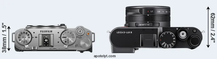 The above size and weight comparisons are to some extent incomplete and possibly misleading, as the D-LUX 8 has a lens built in, whereas the X-M5 is an interchangeable lens camera that requires a separate lens. Attaching the latter will add extra weight and bulk to the setup. You can compare the optics available for the X-M5 and their specifications in the Fujinon X Lens Catalog.