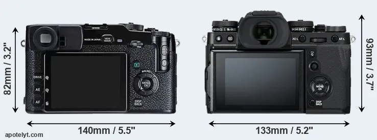 The above size and weight comparisons are to some extent incomplete since they do not consider the interchangeable lenses that both of these cameras require. In this particular case, both cameras feature the same lens mount, so that they can use the same lenses. You can compare the optics available in the Fujinon X Lens Catalog. Mirrorless cameras, such as the two under consideration, have the additional advantage of having a short flange to focal plane distance, which makes it possible to mount many lenses from other systems onto the camera via adapters.
