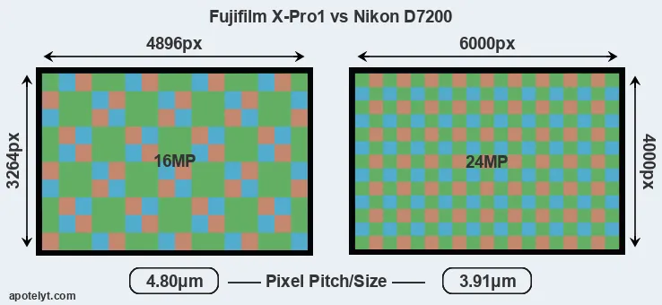 | Sensor Specs | Fujifilm X-Pro1 | Nikon D7200 |
