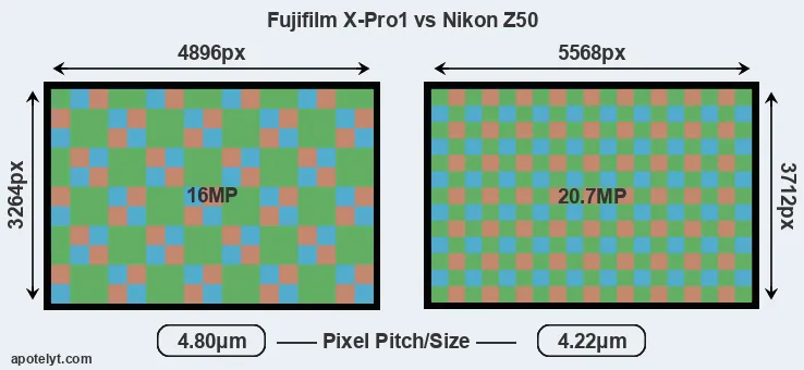 | Sensor Specs | Fujifilm X-Pro1 | Nikon Z50 |