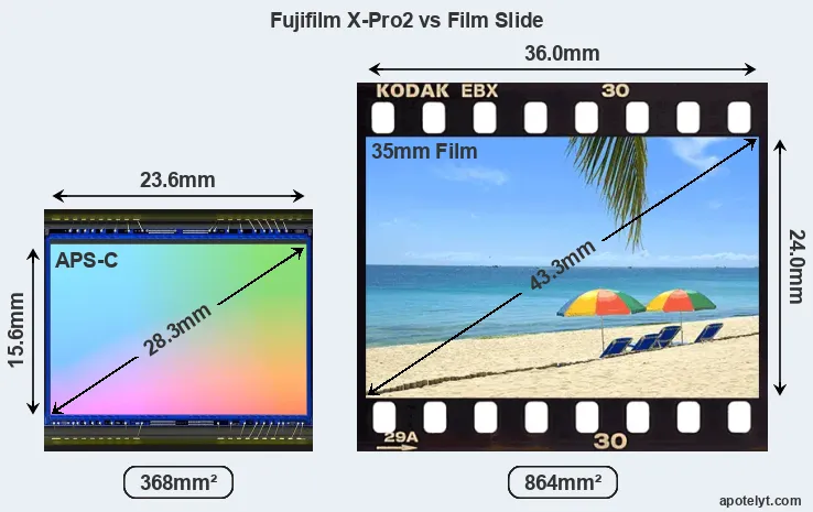 The Fujifilm X-Pro2 features an APS-C sensor and has a format factor (sometimes also referred to as "crop factor") of 1.5. Within the spectrum of camera sensors, this places the Fujifilm X-Pro2 among the medium-sized sensor cameras that aim to strike a balance between image quality and portability.