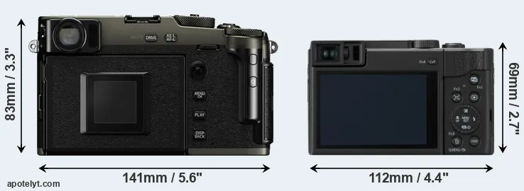 The above size and weight comparisons are to some extent incomplete and possibly misleading, as the TZ95 has a lens built in, whereas the X-Pro3 is an interchangeable lens camera that requires a separate lens. Attaching the latter will add extra weight and bulk to the setup. You can compare the optics available for the X-Pro3 and their specifications in the Fujinon X Lens Catalog.