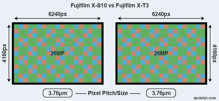 | Sensor Specs | Fujifilm X-S10 | Fujifilm X-T3 |