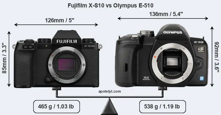 Specifications: Fujifilm X-S10 vs Olympus E-510