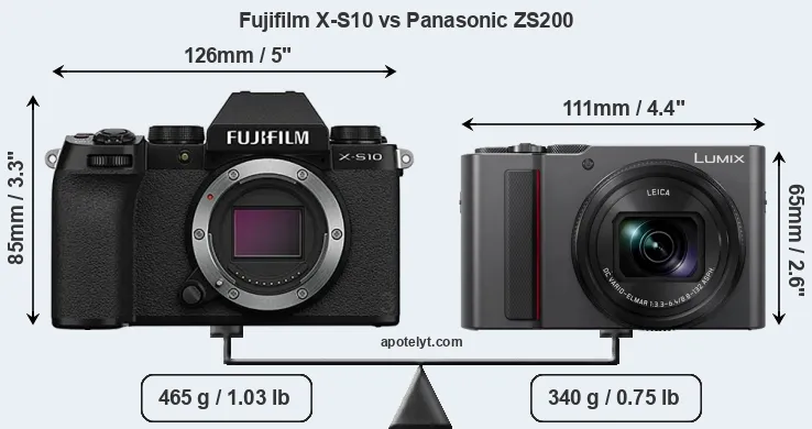 | Body Specs | Fujifilm X-S10 | Panasonic ZS200 |